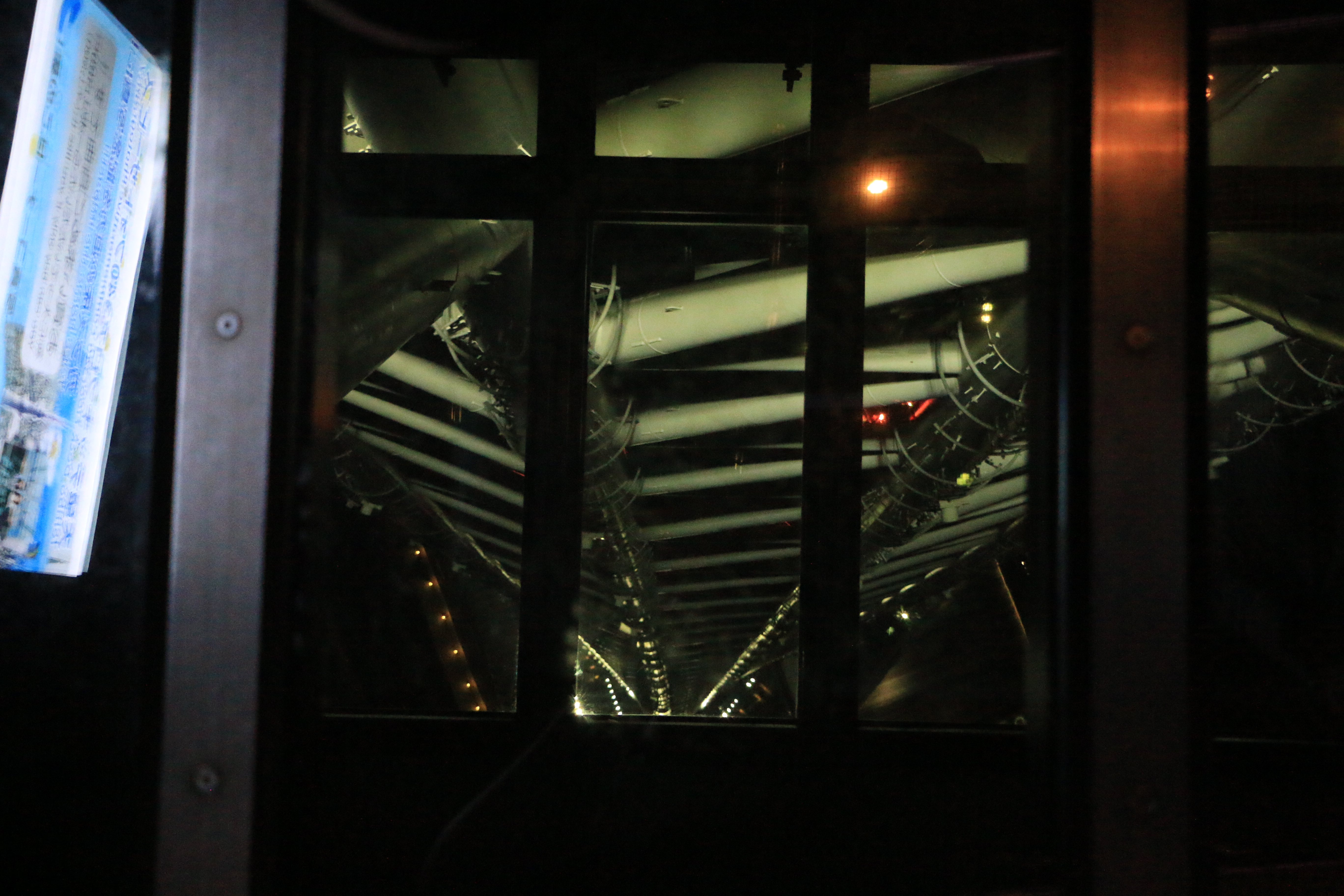 买好票(除了吃饭,这里也可以马云呸),排队进入电梯,我们开始乘坐这部超高速电梯前往 350 层「天望甲板(Tembo Deck)」,也就是 350m 高处。电梯有多快我忘记了… 不过,大概一分钟的样子就上去了,还在电梯里面听了一分钟的宣传片 XD